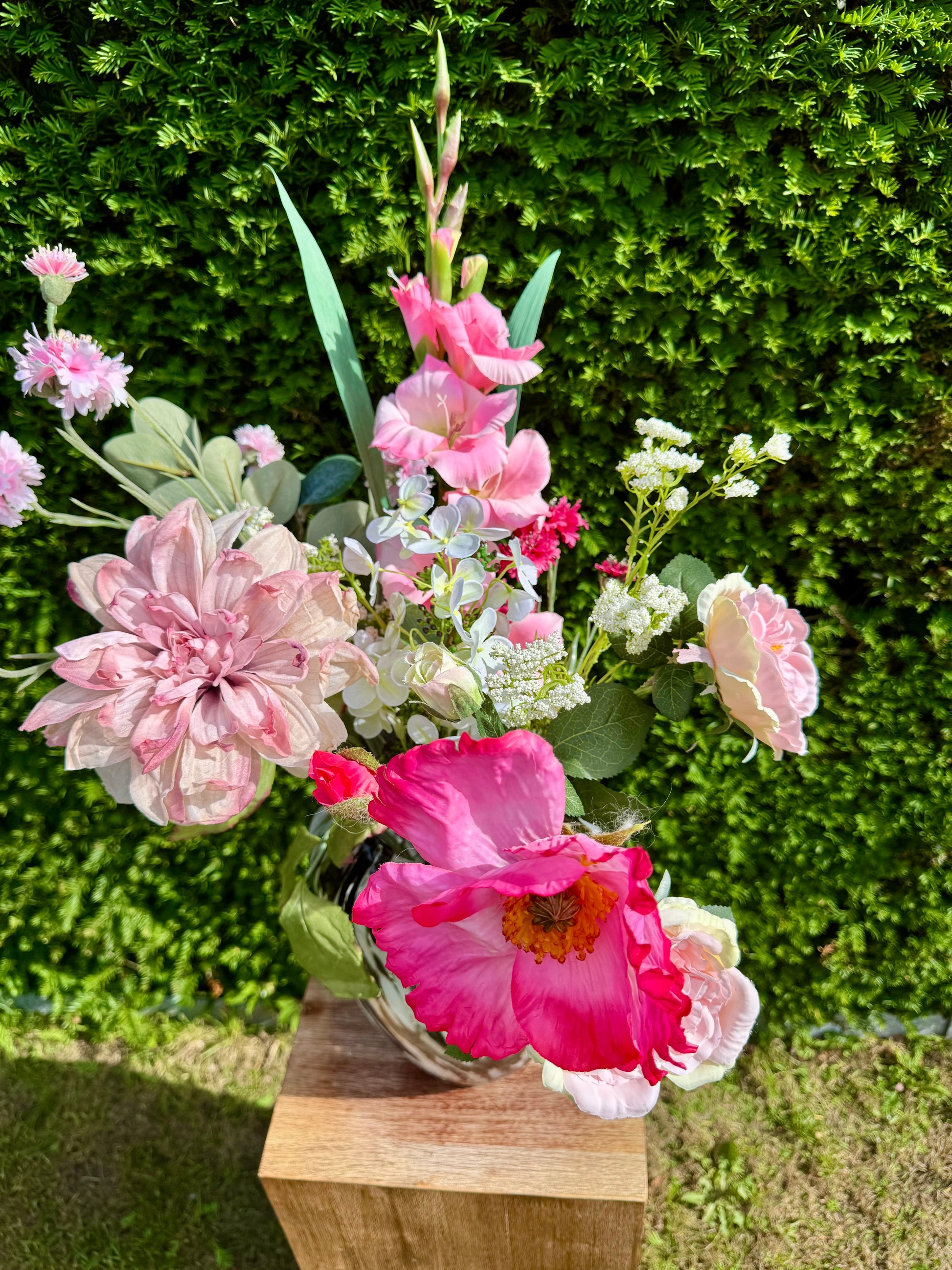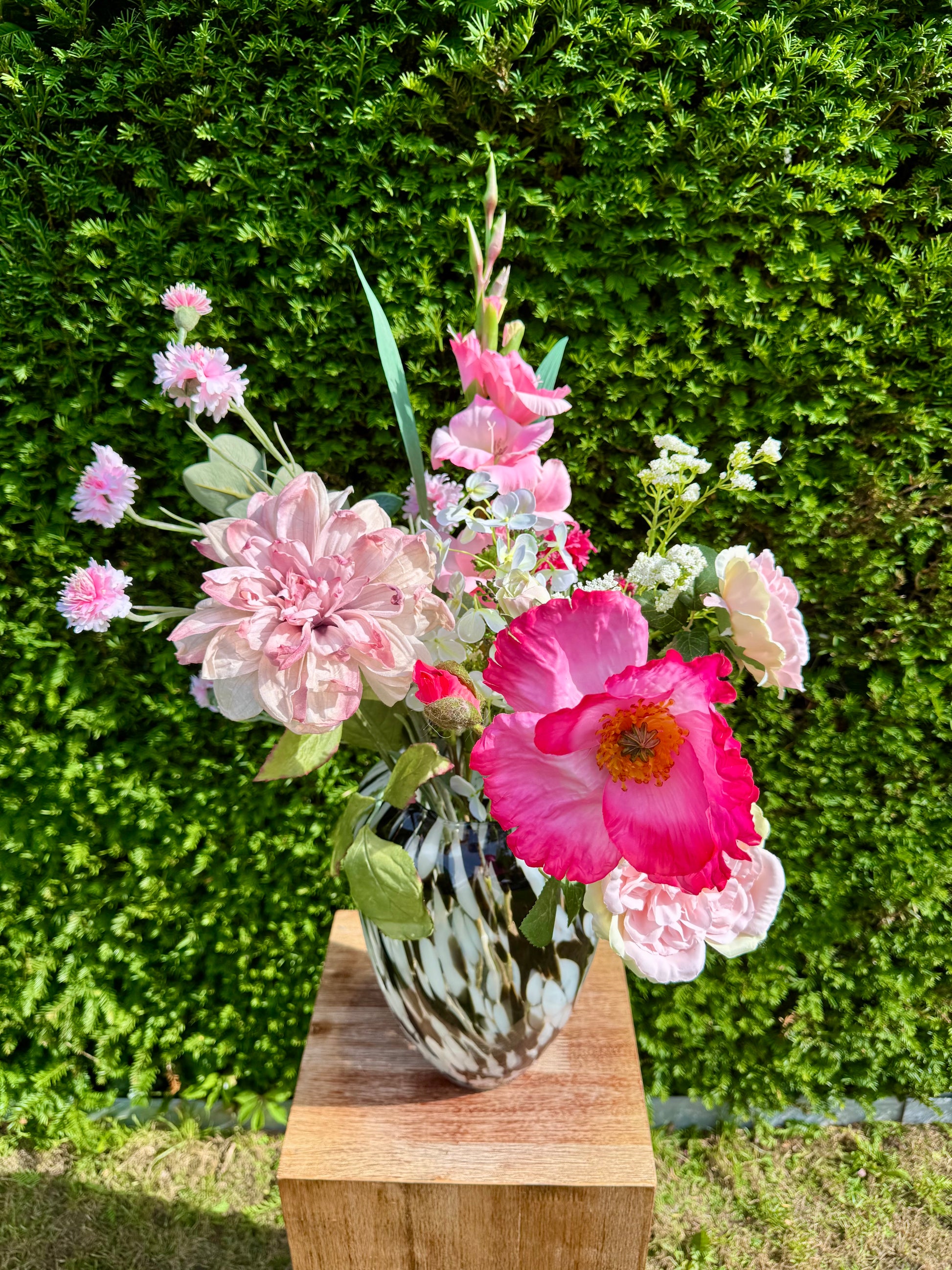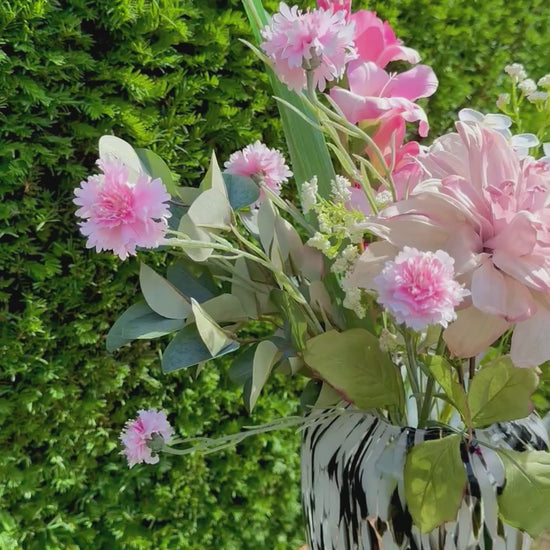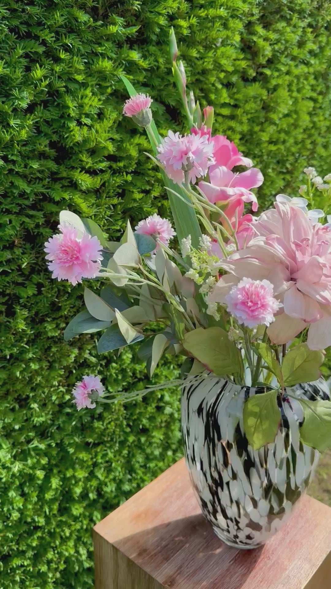 Zomerhart is een expressief boeket vol kleur en karakter. Grote roze bloemen worden afgewisseld met subtiele bloesems, wat zorgt voor een rijke, zomerse uitstraling. Het boeket ademt liefde en levendigheid – perfect als statement in je interieur of als hartverwarmend cadeau.
